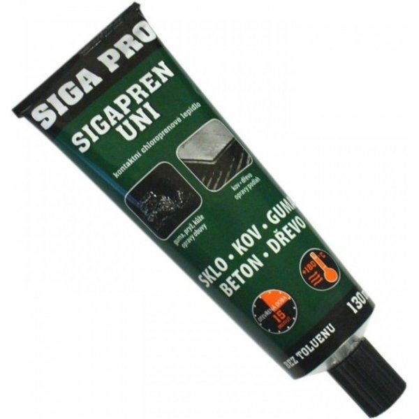 SIGAPREN UNI BEZ TOLUENU je speciální chloroprenové kontaktní lepidlo se širokým uplatněním v domácnosti a průmyslu pro lepení papíru, kůže, textilu, keramiky, skla, kovů, podlahových krytin z korku, PVC, gumy (lisované